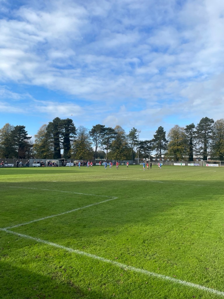 The pitch at Carter’s Park has withstood the recent rain very well. The stadium is tidy and well appointed and is a good place to watch a match. Any ground which has a terrace called the Pig Pen gets my vote.