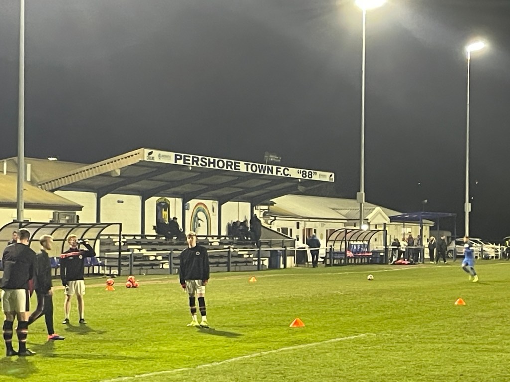 Such is the construction of Pershore Town’s Community Stadium home, it is possible to watch their home games for nothing. Given their early season form, it could be argued that it was still too much to pay. Things have improved on the field and results have also improved dramatically over recent months. For those of us who would rather avoid reliving that 1980s experience of watching a game through a fence, you can pay £7 and also benefit from the bar, catering and toilets – none of which are available anywhere else in this pleasant historic town. FTS chose the paying option, like many others making up a good travelling contingent.