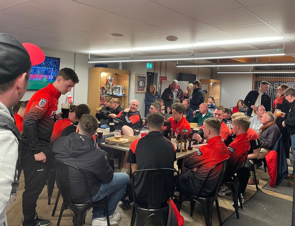 A quick pint and then we hit the M5. Next stop the Clubhouse at Kingys, where the players, officials and supporters could relax with a few pints and whatever Matt Fusco had in that yellow bottle.
